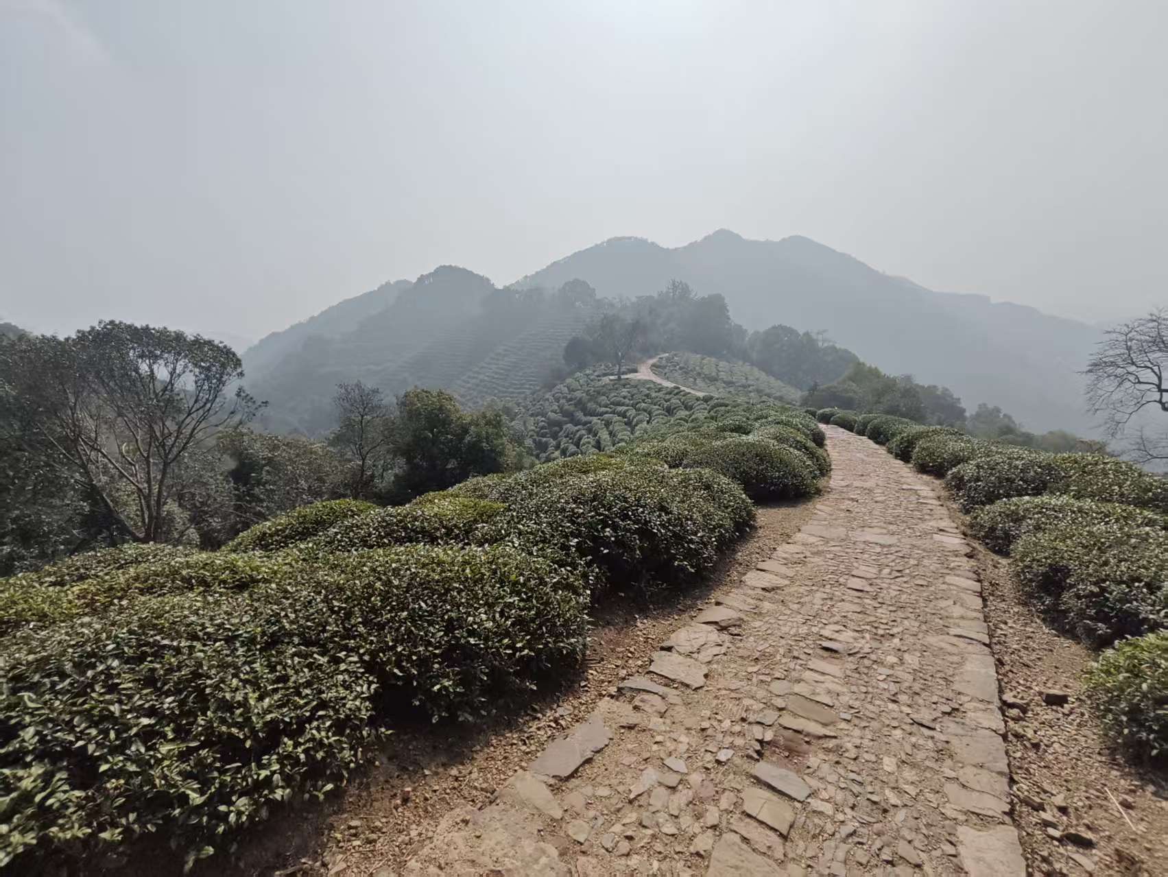 本地人带我们逃票去爬西湖后山了,山景很漂亮,有很多茶田,但是据说叶子都老了。